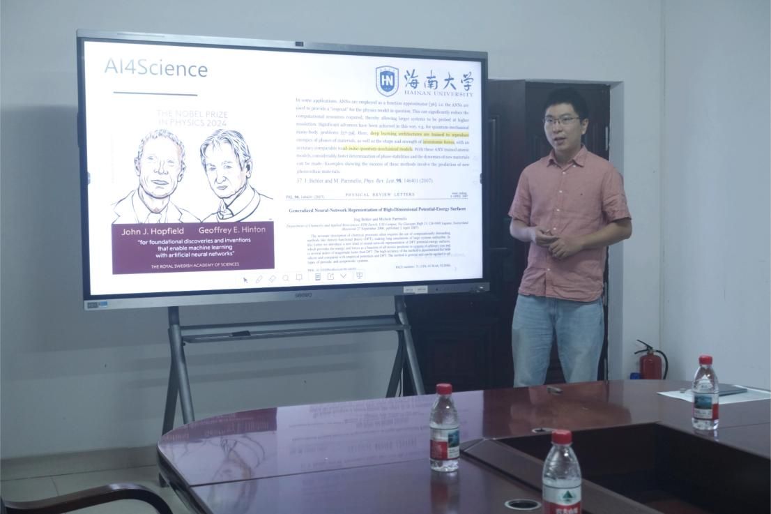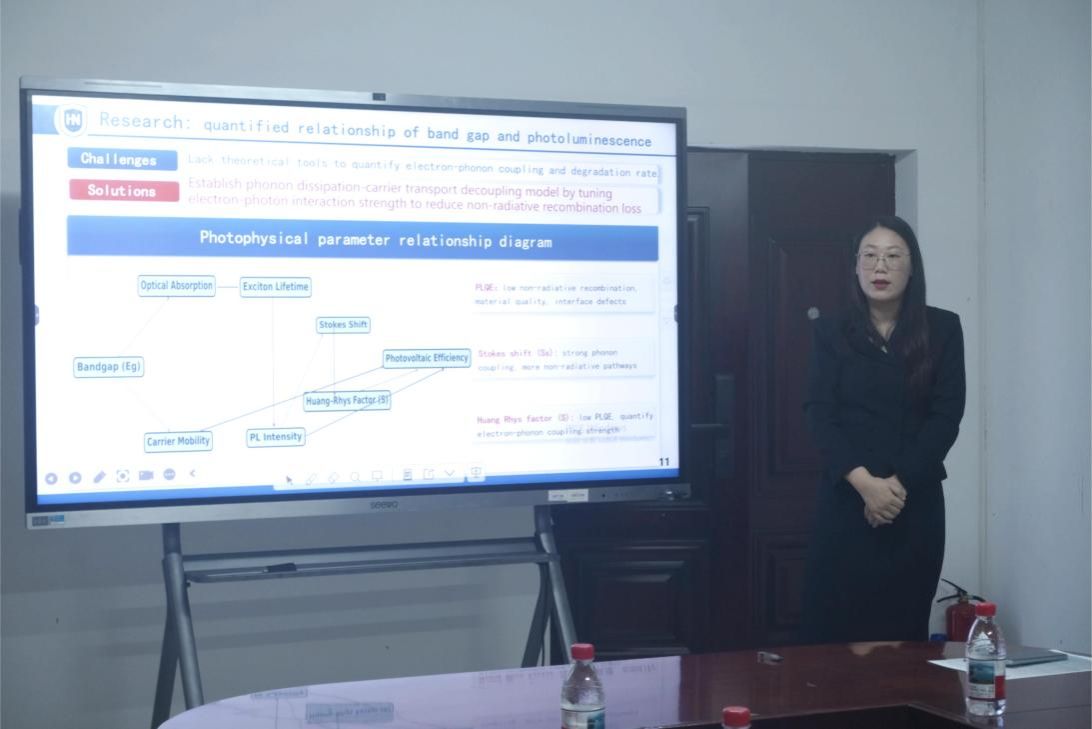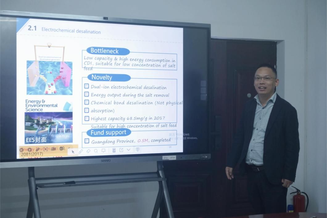 孙萍萍、汤泽远、陈福明三位教师分别以《The creation of high-performance metal halide perovskite materials》《Machine learning interatomic potential and its application in molecular simulations》《Electrochemical Desalination》为题对自己的科研工作进行详细汇报。