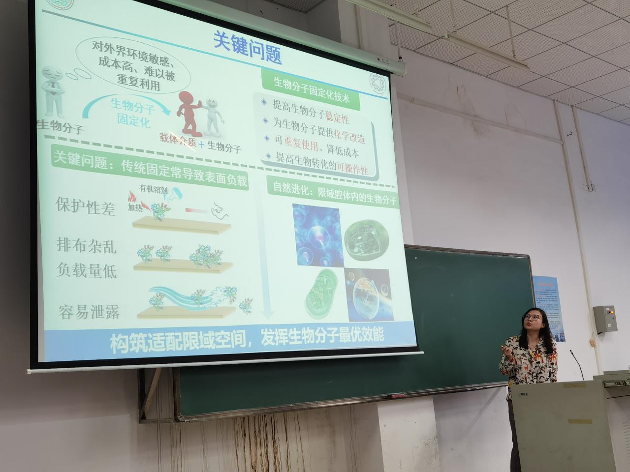 化学工程与技术学院宋玉洁副教授主持,化学工程与技术学院部分教师和全体研究生新生参加。陈瑶研究员是南开大学药物化学生物学国家重点实验室和药学院双聘研究员,博士生导师,长期聚焦酶等生物大分子的限域精准固定及相关生物医药材料及应用平台的创新构建,为广大师生做了题为《生物大分子的限域精准固定及平台化应用》的学术报告,报告中为广大师生介绍了有关生物大分子领域的诸多前沿领域的研究,并且还就平台化应用方面做了深入介绍。报告深入浅出,极具启发性,极大地丰富了学生的思维,扩展了同学们的视野,也激发了同学们的兴趣,会后多位师生与陈研究员进行了热烈的交流和探讨。