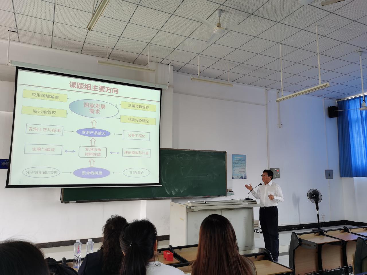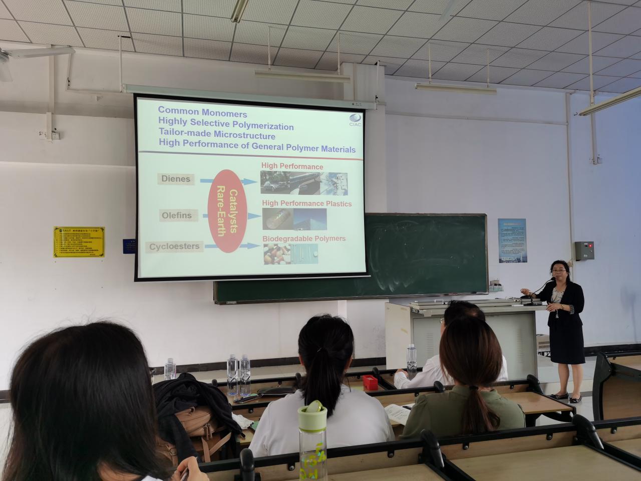 唐涛研究员为大家做了题为《通用聚合物发泡材料制备与产业化应用》的报告,介绍了聚合物多相材料的制备、可控聚合、负泊松比材料的性质和制备、以及聚合物催化成碳与应用; 崔冬梅研究员做了《稀土催化可控配位聚合》的报告,介绍了稀土金属催化体系对丁二烯,异戊二烯,苯乙烯等单体的可控配位聚合,通过对催化剂的结构设计,对聚合物结构进行调控,得到一系列具有独特性能,结构可控的聚合物材料,为材料的新型应用提供了支持。唐涛研究员和崔冬梅研究员的报告深入浅出,引人入胜,从催化剂设计,聚合物合成,聚合物应用三个层面做了介绍,拓宽了大家对高分子化合物的视野。报告会后唐涛研究员和崔冬梅研究员与现场多位师生进行了热烈的交流与讨论。