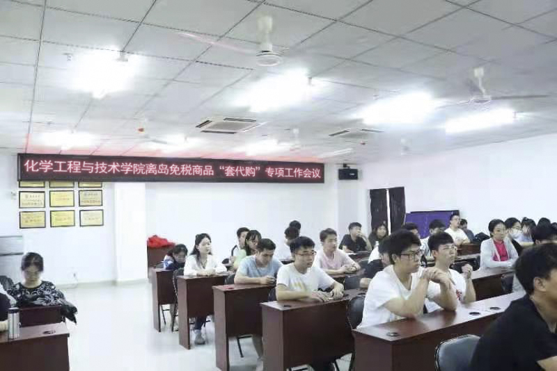 2021年7月13日,化学工程与技术学院下午3:30在研发楼710召开警惕和预防学生参与离岛免税“套代购”专项工作会议。参加会议的有学院党委副书记王林桂、学工办主任王克岩以及本科生和研究生各班留校班团支书、班委、学生党员。会议由王克岩老师主持。