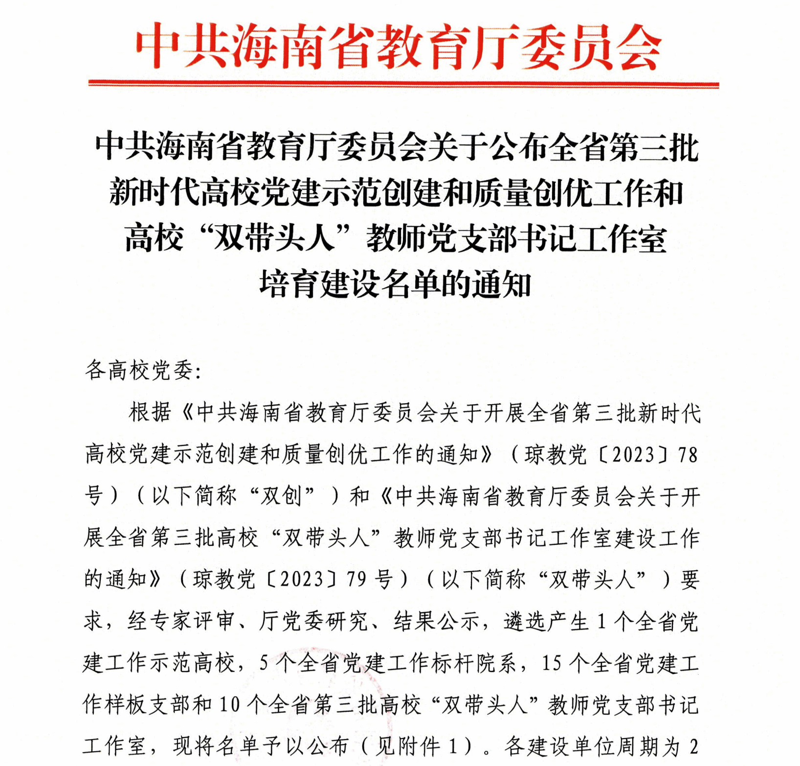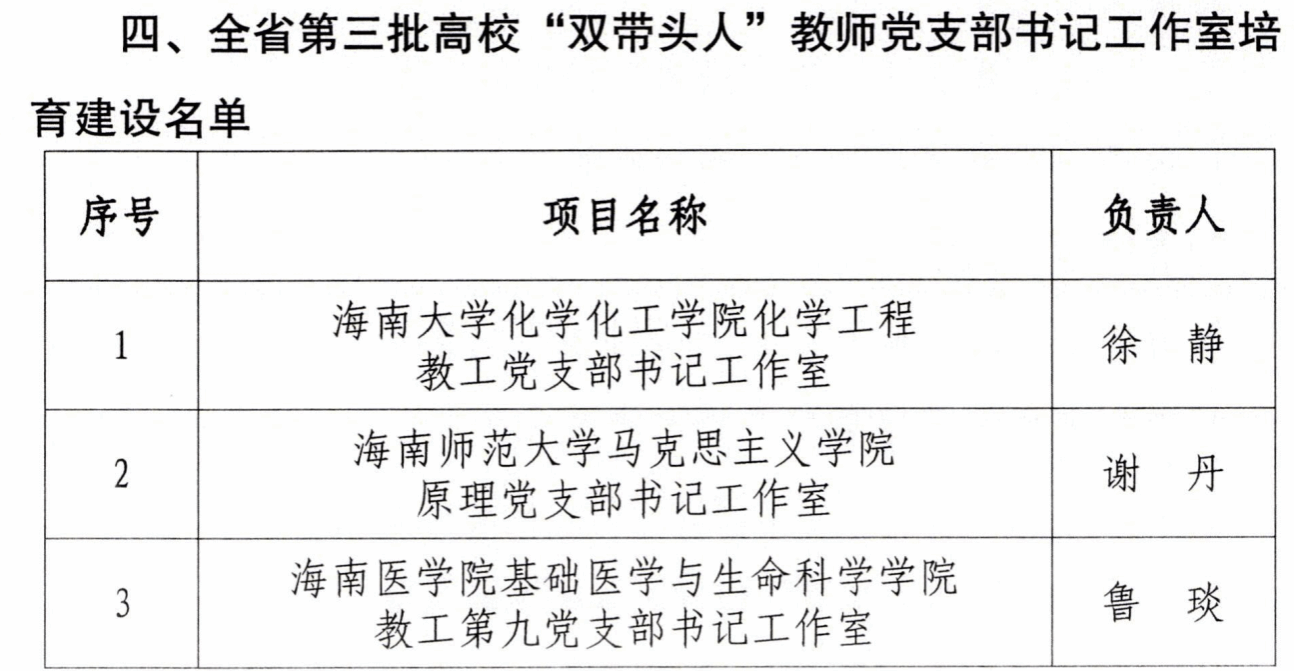 近日,省教育厅委员会公布了全省第三批新时代高校党建示范创建和质量创优工作和高校“双带头人”教师党支部书记工作室培育建设名单,其中第三批全省“双带头人”教师党支部书记工作室培育创建单位10个,杏吧原创