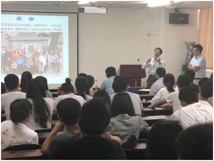 C类高层次人才李健维教授主持此次交流会,朱永法教授从国家能源战略布局、新能源材料的开发和利用、光催化剂的设计合成及工业化应用等多方面对超分子自组装光催化材料在环境、能源与光动力肿瘤疗法等方面进行了系统地介绍,报告深入浅出,极具启发性,极大地丰富了学生的思维,扩展了同学们的视野,也激发了同学们的兴趣,会后多位师生与朱教授进行了热烈的交流和探讨。此外,朱永法教授受邀参观学院的多个专业实验室,并对青年教师相关研究作出指导,提出宝贵的建议。