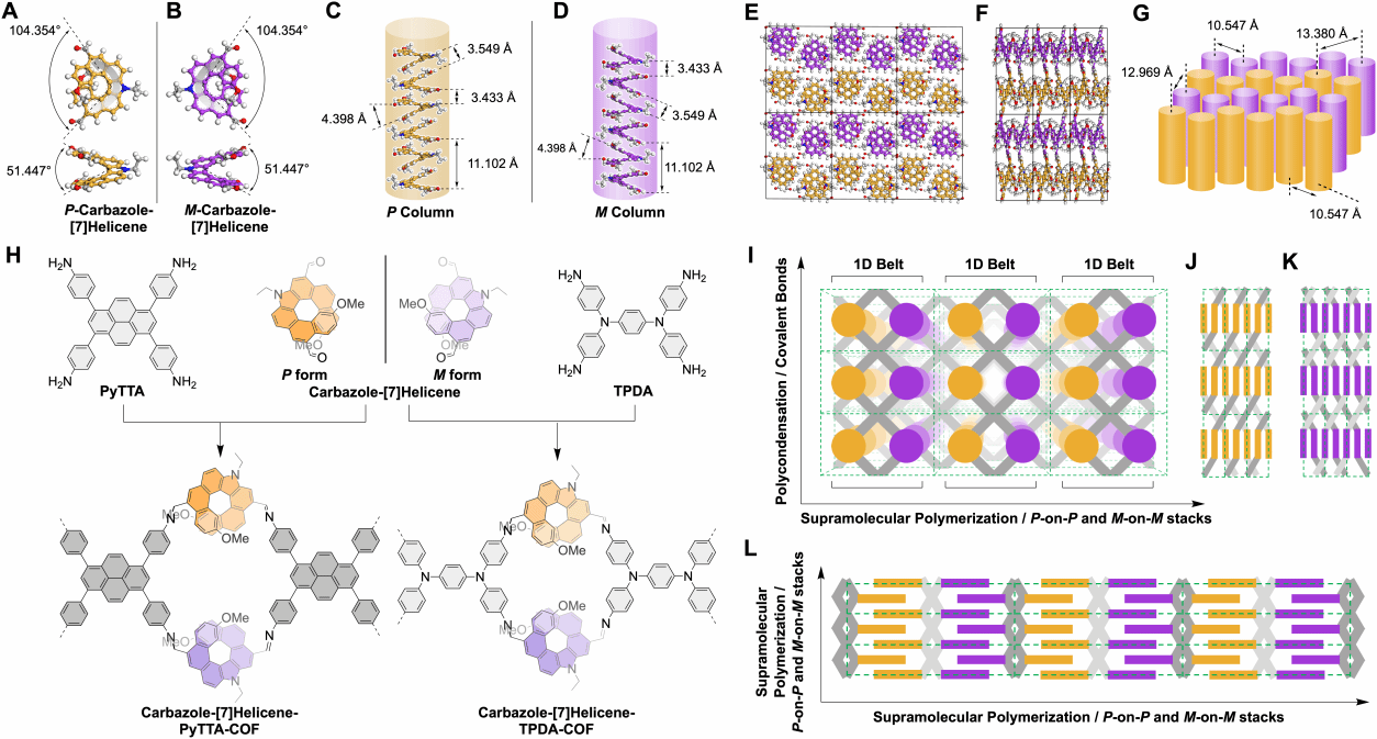 图1. 螺烯单晶及螺烯COFs结构图