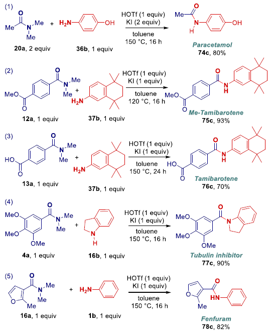图1惰性酰胺的酸/碘共催化转胺化反应(图片来源:Angew. Chem. Int. Ed.)