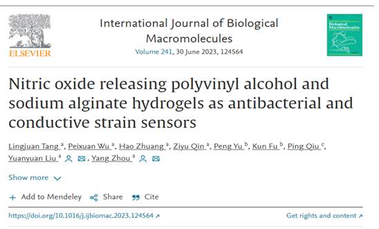 化学工程与技术学院周阳教授课题组在中科院1区国际权威Top期刊《International Journal of Biological Macromolecules》(影响因子:8.025)上发表了最新研究成果“Nitric oxide releasing polyvinyl alcohol and sodium alginate hydrogels as antibacterial and conductive strain sensors”(释放一氧化氮的聚乙烯醇和海藻酸钠水凝胶作为抗菌和导电的应变传感器)。杏吧原创