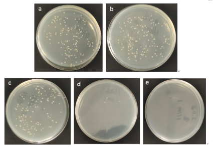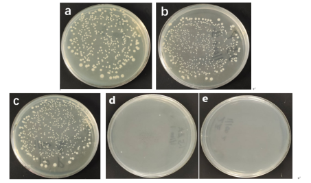 图2 可生物降解PLA/ZnO/助剂无纺布对大肠杆菌的抗菌性