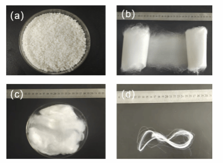 (a)PLA/ZnO/助剂切片 (b)PLA/ZnO/助剂无纺布
