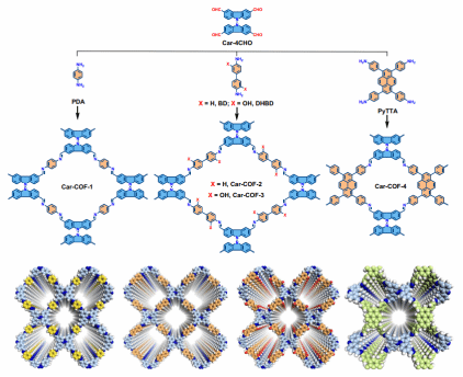 图 2. 双咔唑COFs的设计与合成。