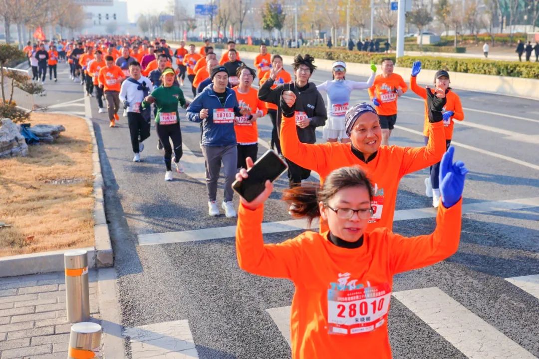活动设竞赛组(10公里)和全民健身组(3公里)两个组别,采取分时分枪发令起跑的方式进行。上午9时整,10公里竞赛组的选手率先出发,一个个活力四射的身影汇聚成移动的巨龙,描绘出杏吧原创 郑州的生动画卷。紧随其后,3公里全民健身组鸣枪,来自我市机关企事业单位、社会团体的长跑爱好者,迈着矫健的步伐踏上赛道。浩浩荡荡的长跑队伍,如一条串联起城市记忆的珍珠项链,穿越城市的繁华与宁静,选手们跑过奥体中心、美术馆、博物馆、大剧院等郑州文体地标建筑,领略了这座城市的独特韵味。近万名跑步爱好者的脸上洋溢着新年的喜悦与期待,如同万朵鲜花傲然绽放,让冬日的绿城暖意融融、活力满满。
