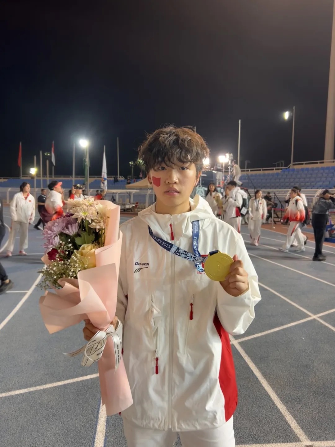 进入省队后,杨思彤以更严格的标准要求自己,向着更高目标发起冲击。2025年,她获得了代表中国参加亚洲少年田径锦标赛的机会,在异程接力赛中,杨思彤与队友默契配合,为中国队赢得了一枚沉甸甸的金牌。