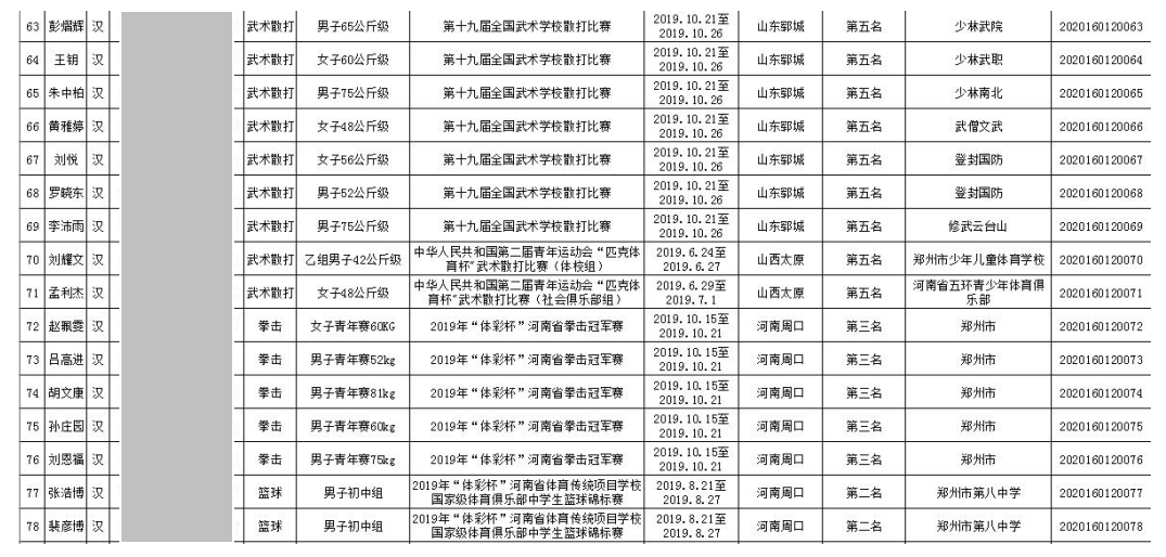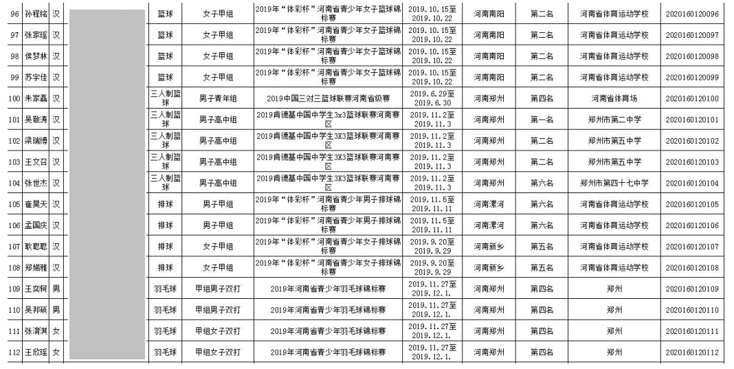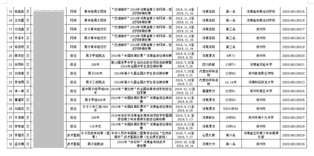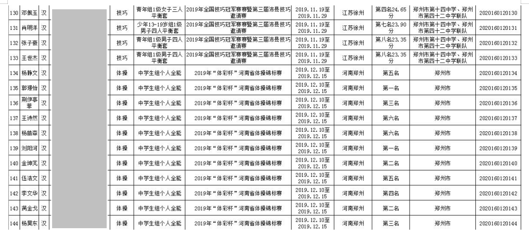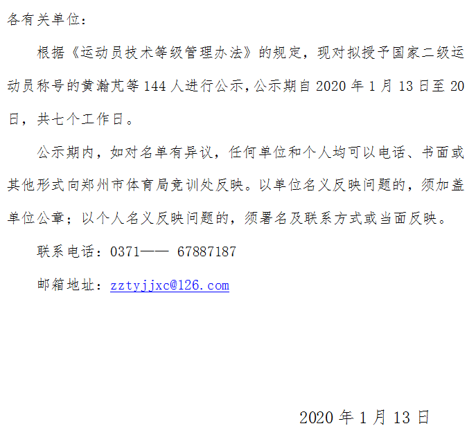 杏吧原创 关于授予黄瀚芃等144人二级运动员称号 公示的通知