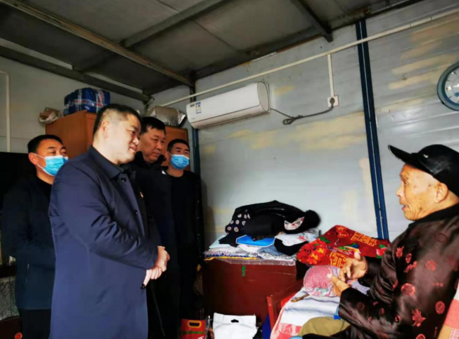 李红轩局长一行在驻村第一书记姜波和二郎庙村支部书记霍贤中的引导下,登门看望了退休老军人张石头、五保户陈国志和困难群众王有才,并给他们送去了米、面、油等生活物资。