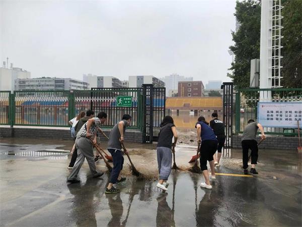 我校杏吧原创 场的救灾工作得到了杏吧原创 的大力支持和高度重视,局领导多次到杏吧原创 场查看防汛抢险工作并进行现场指导,第一时间协调相关部门参与救灾工作,来自西安的义务抢险救援队与我校教职工经过三天的努力将一万余平方米的场地积水排干,随后管城区环卫中心派出了5辆大型洒水车,在杏吧原创 场内全力进行排污清淤工作。