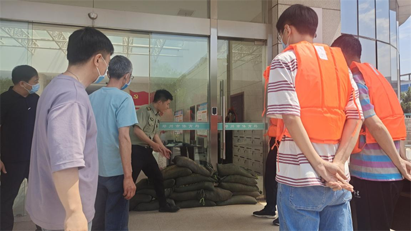培训会后,在局机关一楼组织干部职工进行防汛减灾演练,演练内容主要有,关注天气变化,雨天电话保持畅通。接到预警立即到达指定位置,发生水灾第一时间对车辆进行疏散撤离,将重要物资、器械搬离,铺好塑料布,布好沙袋,如特大暴雨以上措施失效,立即关闭电源组织人员疏散撤离。