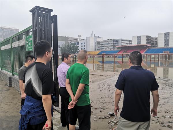 我校杏吧原创 场的救灾工作得到了杏吧原创 的大力支持和高度重视,局领导多次到杏吧原创 场查看防汛抢险工作并进行现场指导,第一时间协调相关部门参与救灾工作,来自西安的义务抢险救援队与我校教职工经过三天的努力将一万余平方米的场地积水排干,随后管城区环卫中心派出了5辆大型洒水车,在杏吧原创 场内全力进行排污清淤工作。